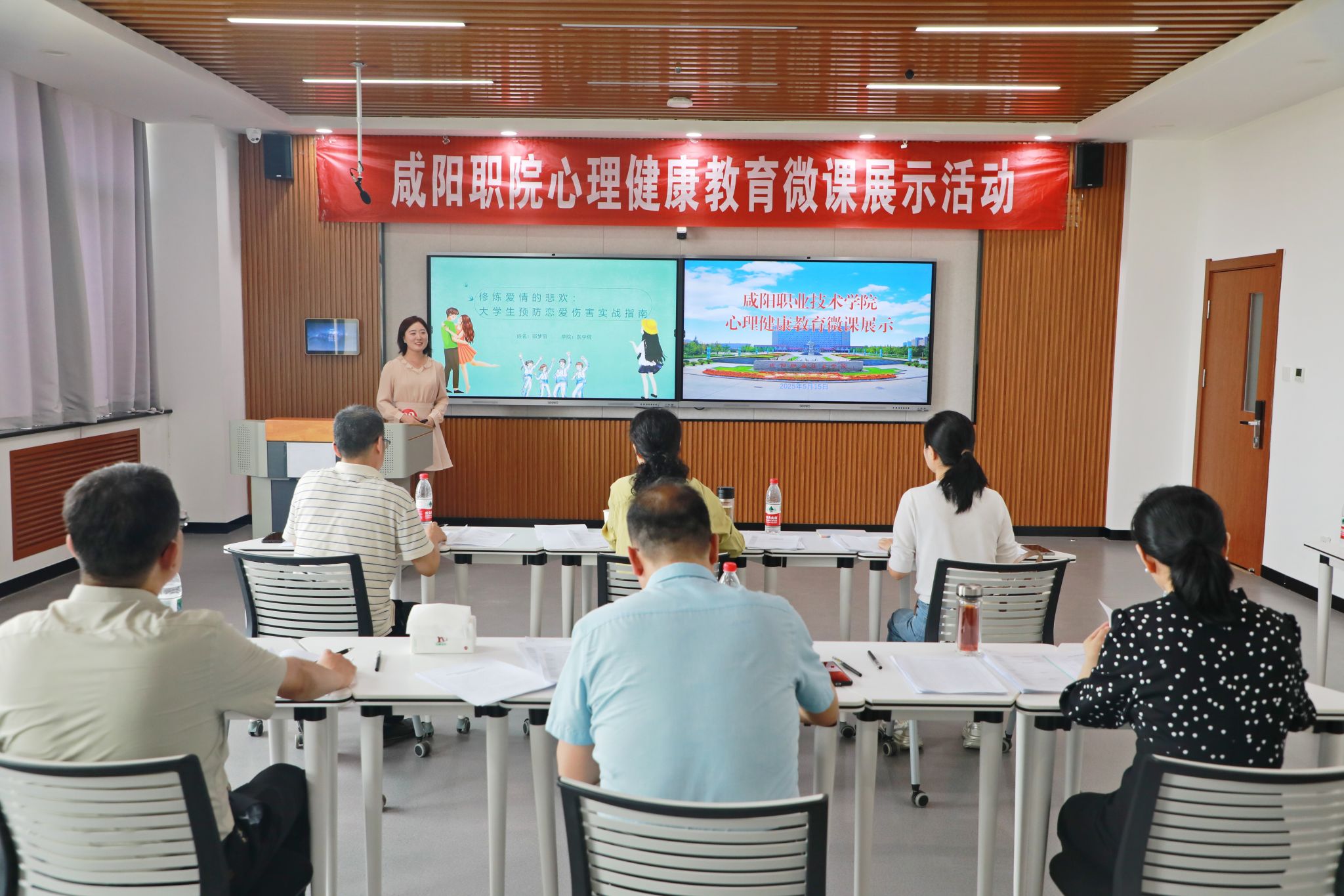 活动现场,14位老师紧扣心理健康教育主题,围绕学生日常学习、生活场景,萃取典型案例,精心打磨微课内容,生动呈现了情绪调适、自我意识、大学生恋爱等心理健康知识要点,展现了心理健康教育的魅力与价值。评委们从主题与内容、设计与安排、表达与讲解、效果与评价4个方面对选手的表现进行全面、细致的综合评价。
