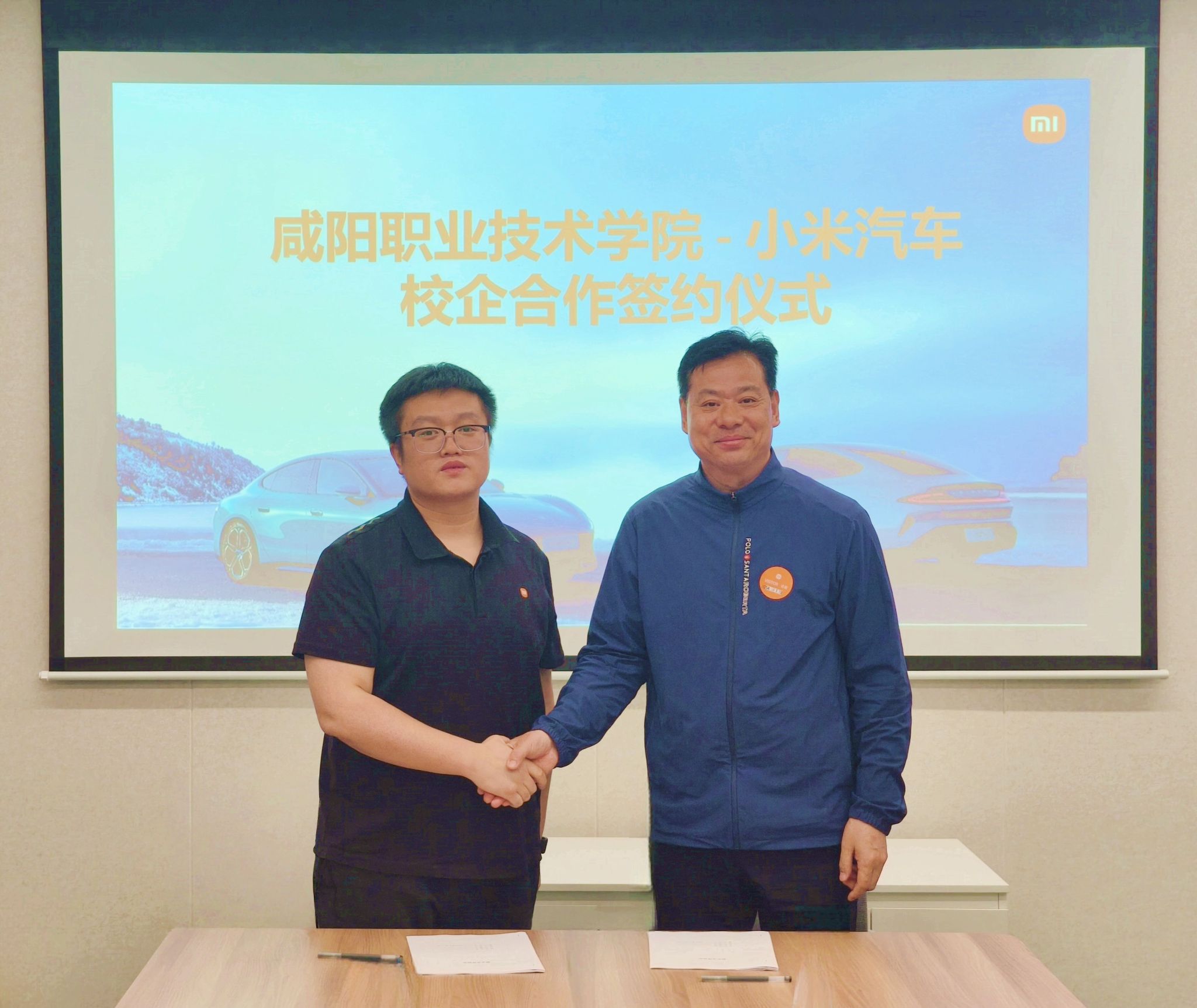 张迪、李智勇代表校企双方签订了校企合作协议。签约结束后,李智勇陪同张迪一行参观了小米汽车展厅及生产车间。