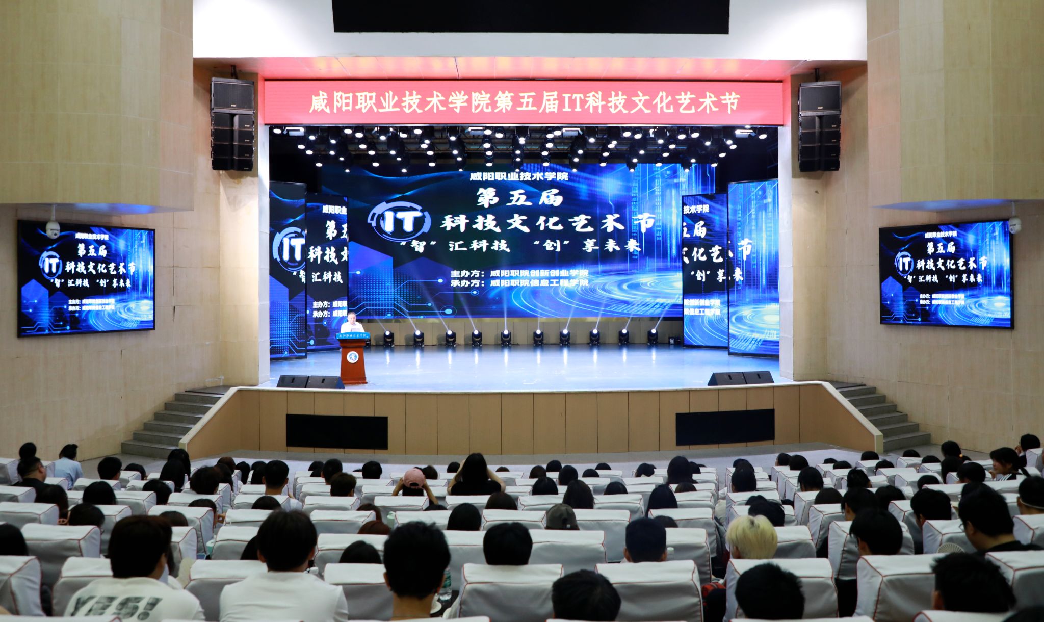 信息工程学院负责人致辞,创新创业学院负责人解读活动实施方案。学院党委副书记、工会主席孙彦彬宣布第五届”校园IT科技文化节”启动。与会领导和师生代表一起观看《燃烧吧青春》《来电》《时光叩问》《如愿》《觉醒年代》等具有IT科技教育意义的开场节目。