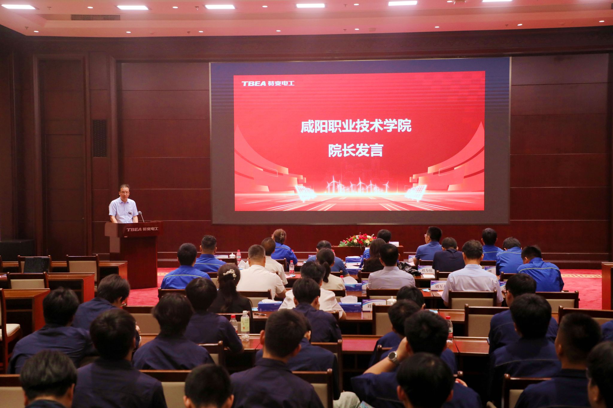 签约仪式上,特变电工新能源公司人力资源总监赵岩致辞,西科公司副总经理史云霞详细介绍了订单班人才培养方案。米兰milan院长杨卫军表示,特变电工作为国际能源装备制造与系统解决方案领域的领军企业,在科技创新、产业升级和全球能源可持续发展中彰显了行业龙头的责任担当,在输变电设备、新能源装备、光伏发电等领域具有巨大的市场影响力和技术优势。此次签约授牌仪式,是校企双方深化产教融合、实现事业共赢的一次重要实践。希望订单班的同学珍惜宝贵机遇,用好学习实践平台,勤学苦练、砺志成才,努力成为企业的一名正式员工。