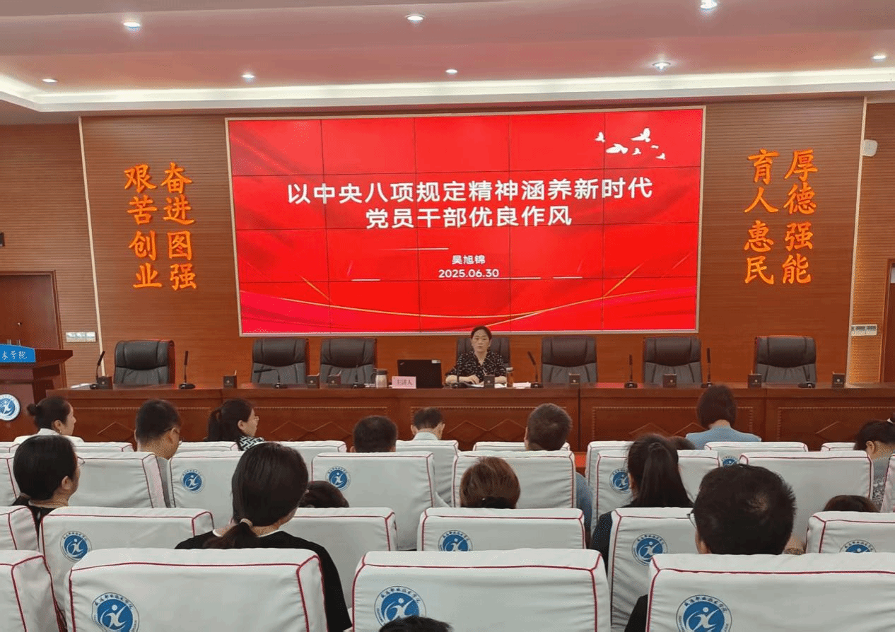 为进一步深入贯彻中央八项规定精神学习教育,强化党员干部的纪律意识和作风建设,6月30日,米兰milan副院长吴旭锦以“以中央八项规定精神涵养新时代党员干部优良作风”为题,为分管联系部门的全体党员讲授专题党课。