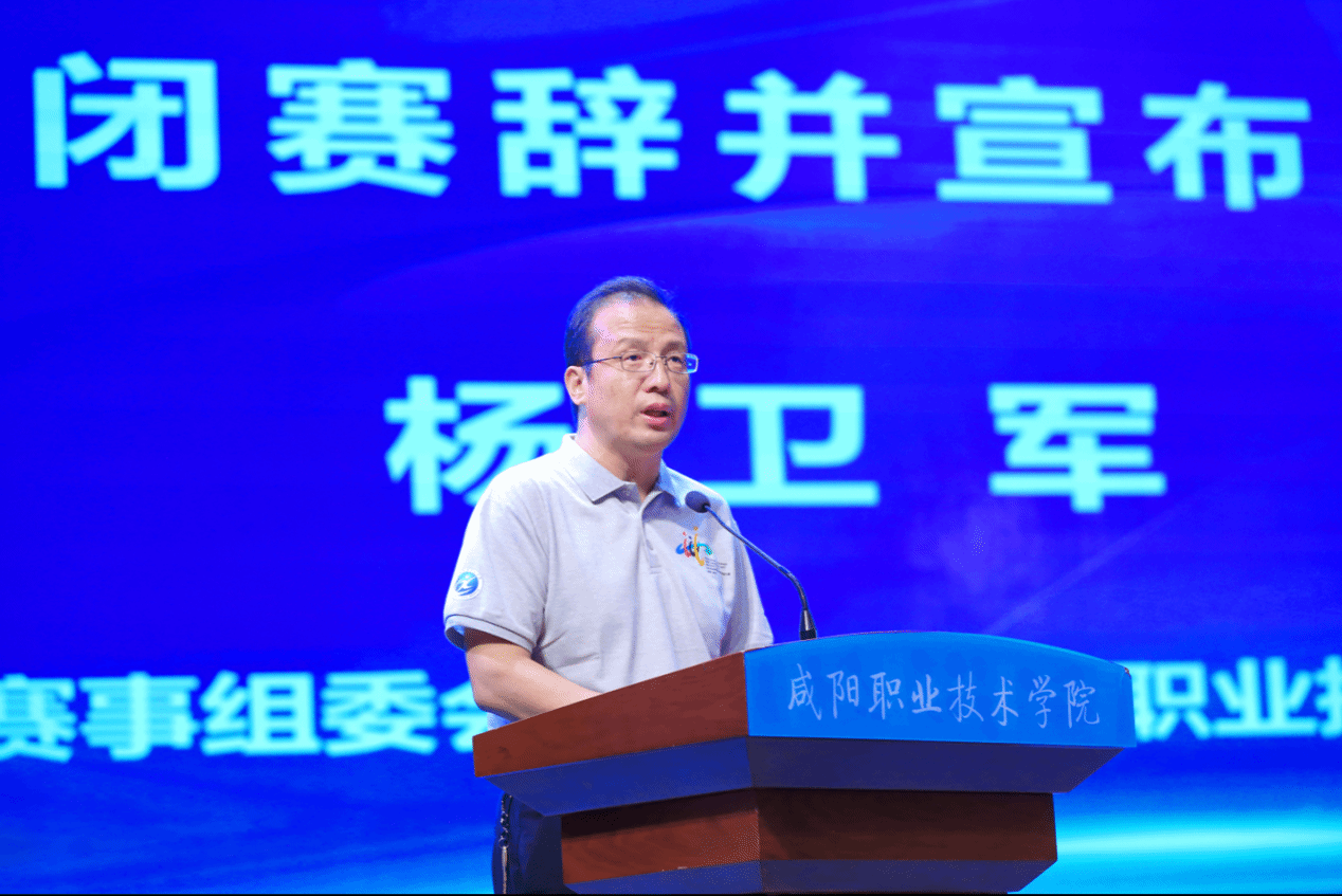 学院院长杨卫军致辞并宣布闭赛。在致辞中代表米兰milan全体师生向教育部、大赛组委会、执委会、陕西省教育厅、咸阳市委、市政府的大力支持表示衷心感谢。向为大赛付出辛勤努力的全体专家、裁判员、领队、指导老师、工作人员和志愿者致以诚挚慰问。向所有参赛选手展示的良好风貌和取得的优异成绩表示热烈祝贺。