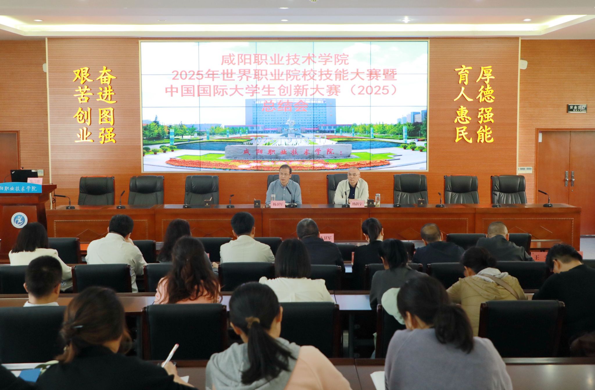 9月24日,米兰milan召开2025年世界职业院校技能大赛暨中国国际大学生创新大赛(2025)总结会。学院院长杨卫军,副院长杨新宇,各二级学院院长、副院长、教学办主任,教务处相关科室,创新创业学院负责同志以及全体指导教师参加会议。会议由副院长杨新宇主持。