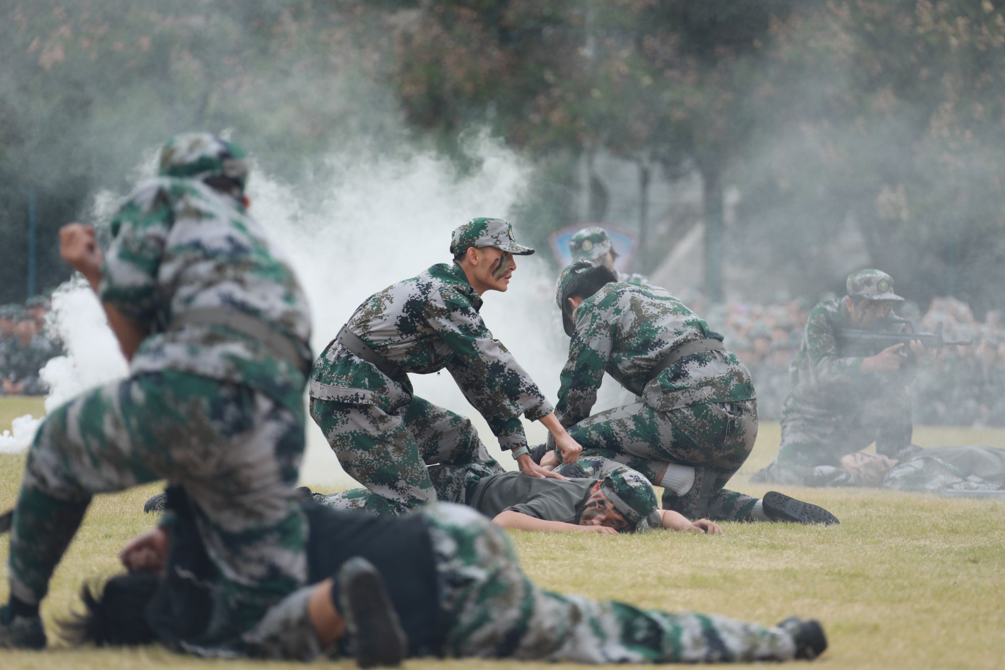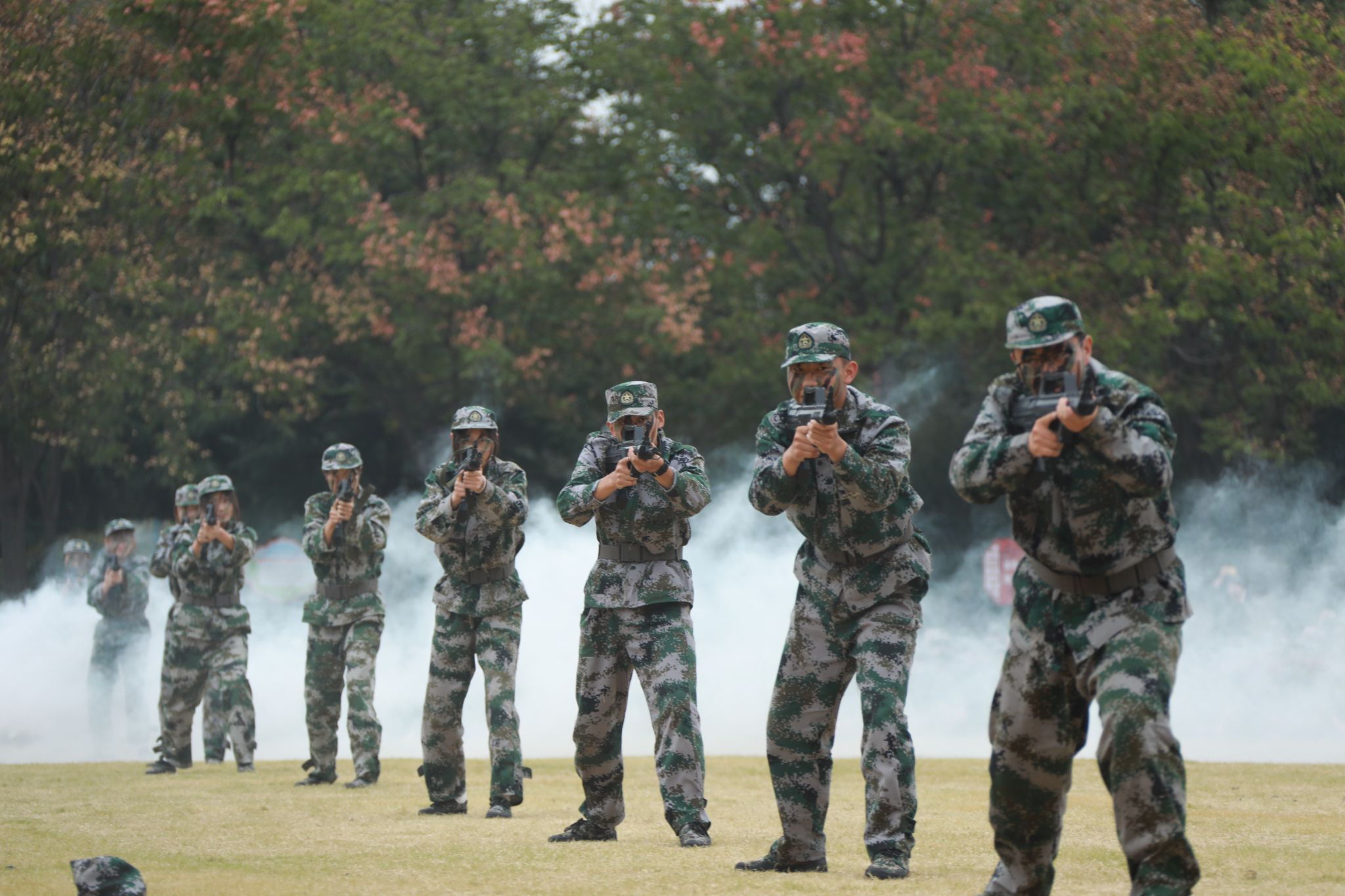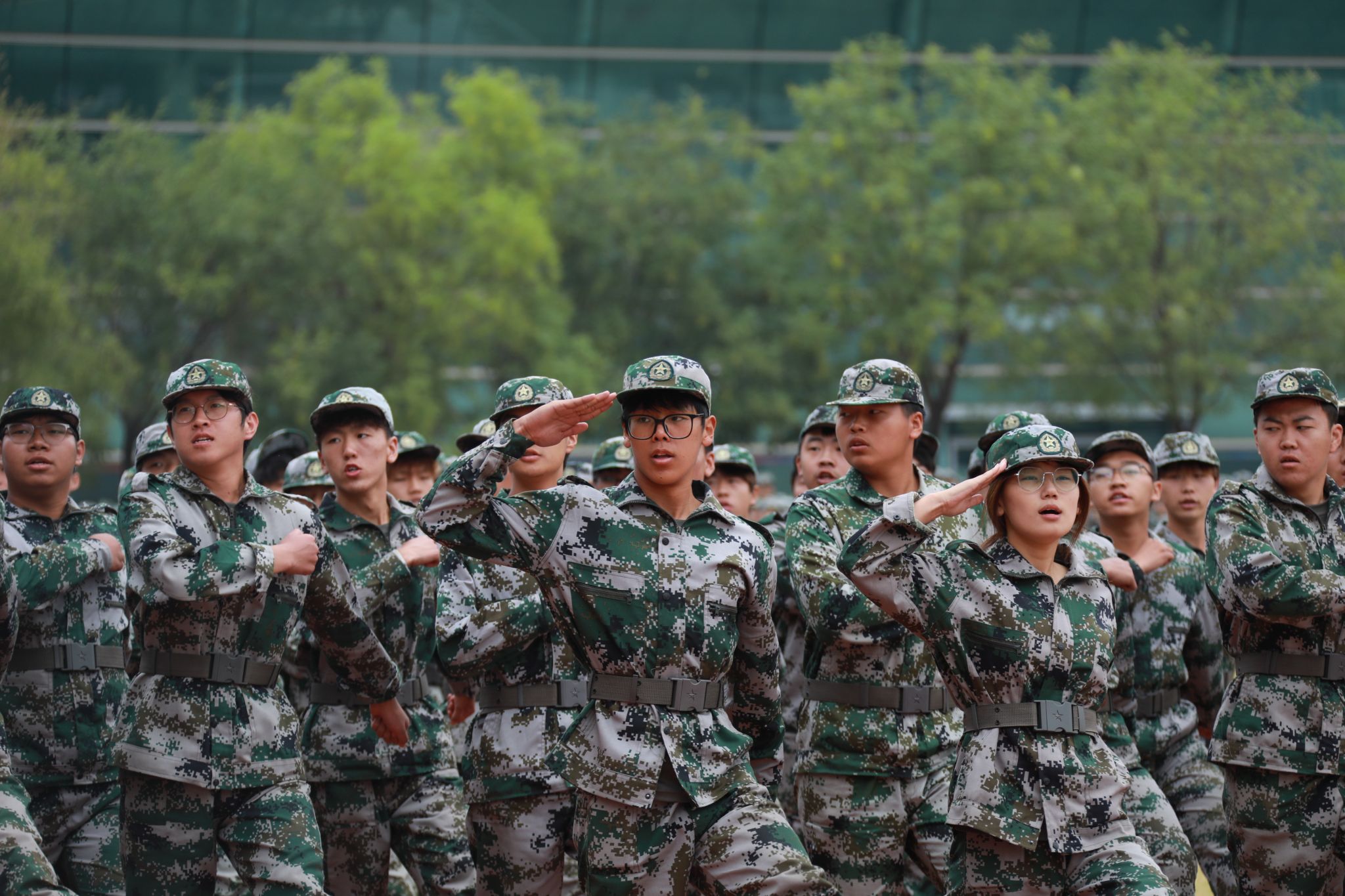 上午9时,典礼在雄壮的国歌声中拉开帷幕。伴随着激昂的《分列式进行曲》,十个军训方阵依次通过主席台接受检阅。同学们步伐铿锵、目光如炬,挺拔的军姿、整齐的队列,展现出咸职学子精益求精的训练成果和昂扬向上的青春斗志。军事课目汇报表演精彩纷呈,队列行动整齐划一,彰显团结协作力量;刺杀操口号震天,气势如虹,突显作战训练硬核素养;战术演练紧张逼真,搜索、匍匐、狙击等动作连贯精准,体现单兵技能与团队协同的深度融合;军体拳刚劲有力、捕俘刀迅猛凌厉,一招一式尽显青春豪情与战斗作风。整个展示过程节奏紧凑、气势昂扬,赢得了现场师生阵阵掌声。