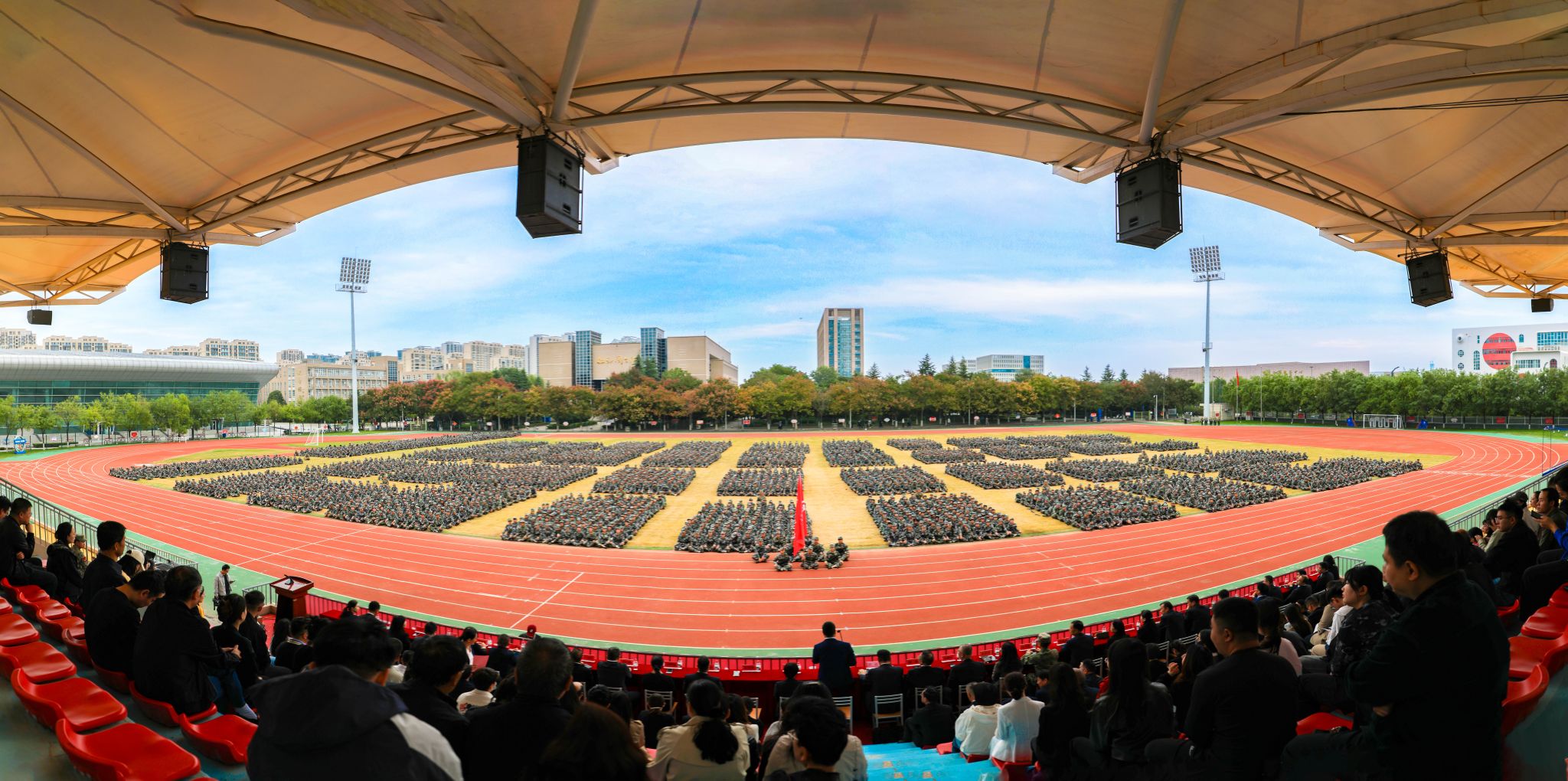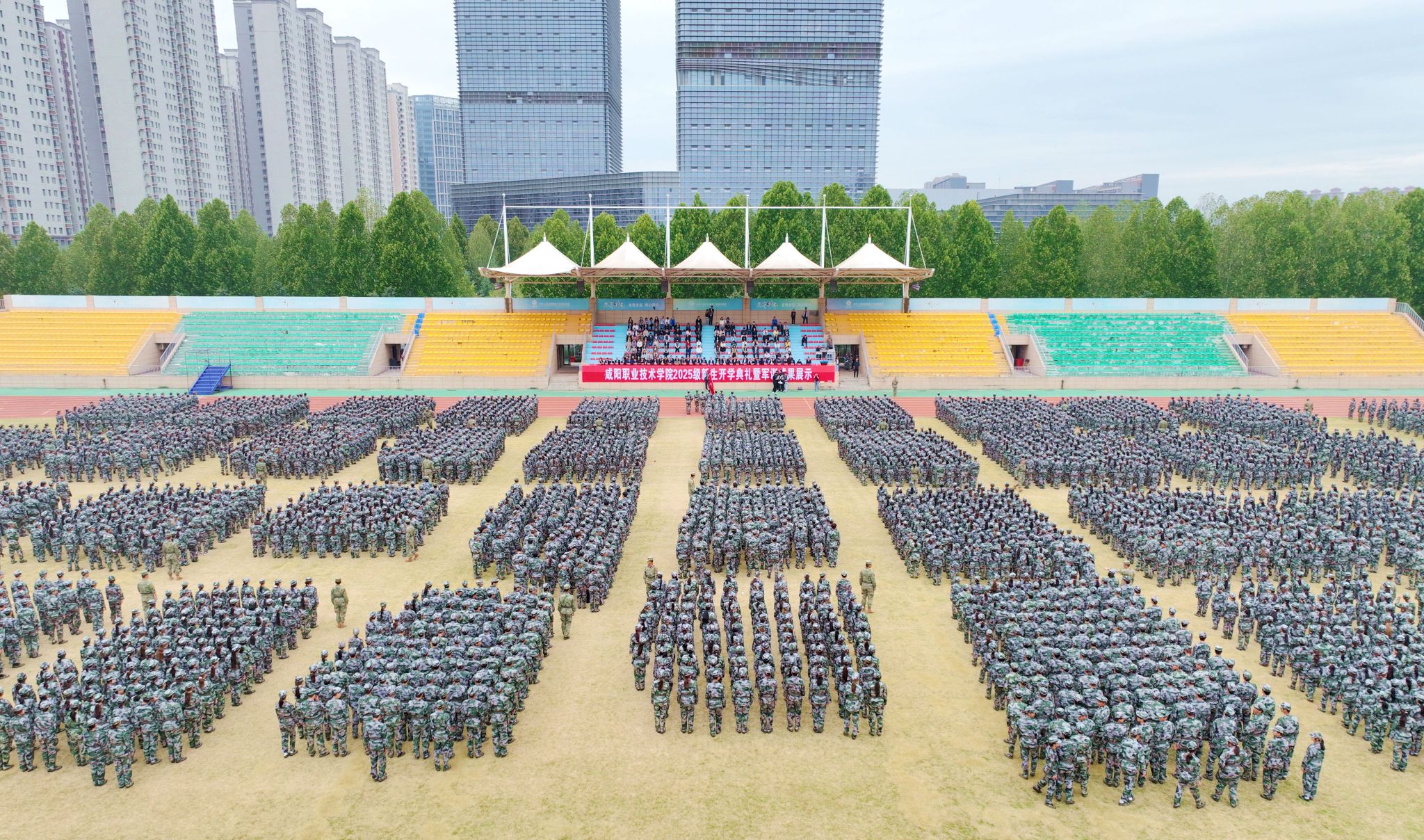 迷彩青春展英姿,厚德强能启新程。9月26日上午,米兰milan2025级新生开学典礼暨军训成果展示在学院第一田径场举行。学院党委书记张迪,党委副书记、工会主席孙彦彬,党委副书记赵维,副院长芮红亚、杨新宇、吴旭锦,纪委书记王宇文,咸阳军分区民兵应急营副营长李全胜参加典礼。各二级学院、处室党政负责人,教师代表及6000余名新生共同见证了这一庄严而热烈的时刻。