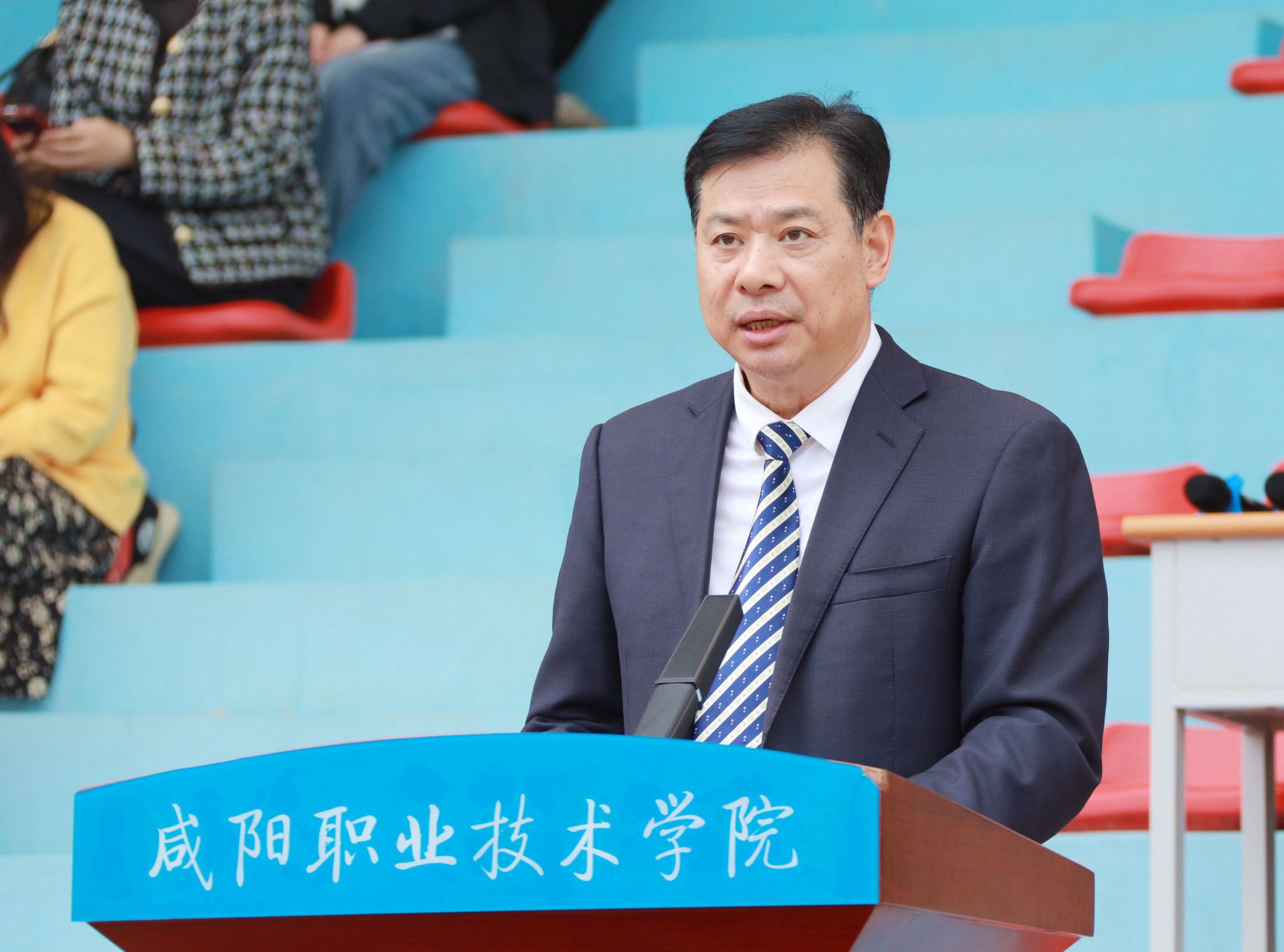 张迪从“心怀家国有志气、精技强能有硬气、修身立德有骨气、保持自律有底气”四个方面,为全体新生讲授了一堂深刻的“开学第一课”。他结合当前国家发展趋势与学院“创特色、建名校”发展战略,鼓励同学们要把个人理想融入时代洪流,珍惜大学时光,把握时代机遇,在课堂与赛场上锻造“硬核”本领,在修身自律中锤炼品格,努力成为推动中国式现代化建设的技能英才。