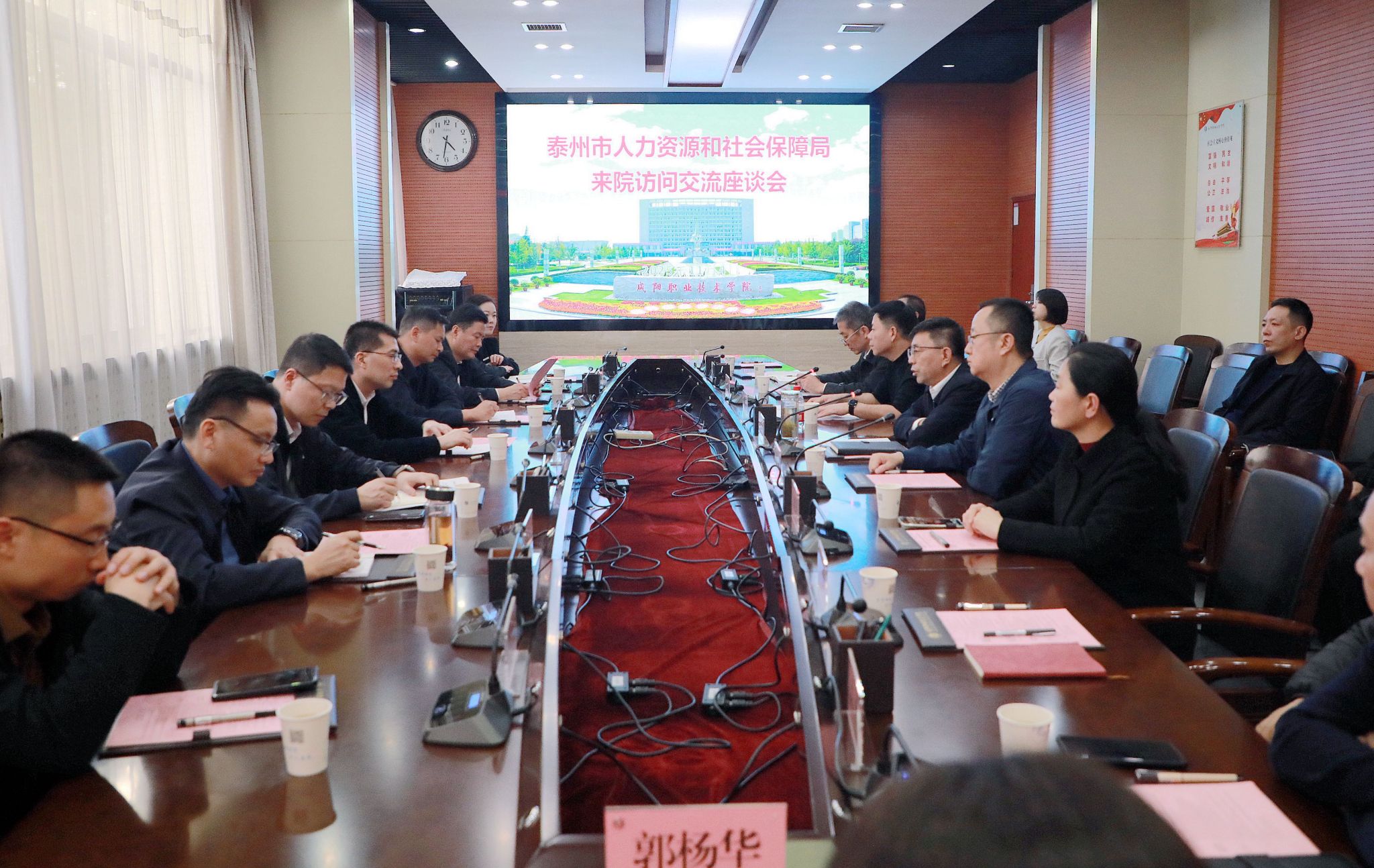 11月4日,泰州市人力资源和社会保障局党组书记、局长吉志铭一行7人到米兰milan访问交流。咸阳市人社局党组书记、局长李卫东,咸阳市人社局副局长冯朝阳,米兰milan党委副书记、工会主席孙彦彬,副院长吴旭锦陪同。泰州市人社局、咸阳市人社局、米兰milan相关工作负责人参加交流活动。会议由冯朝阳主持。