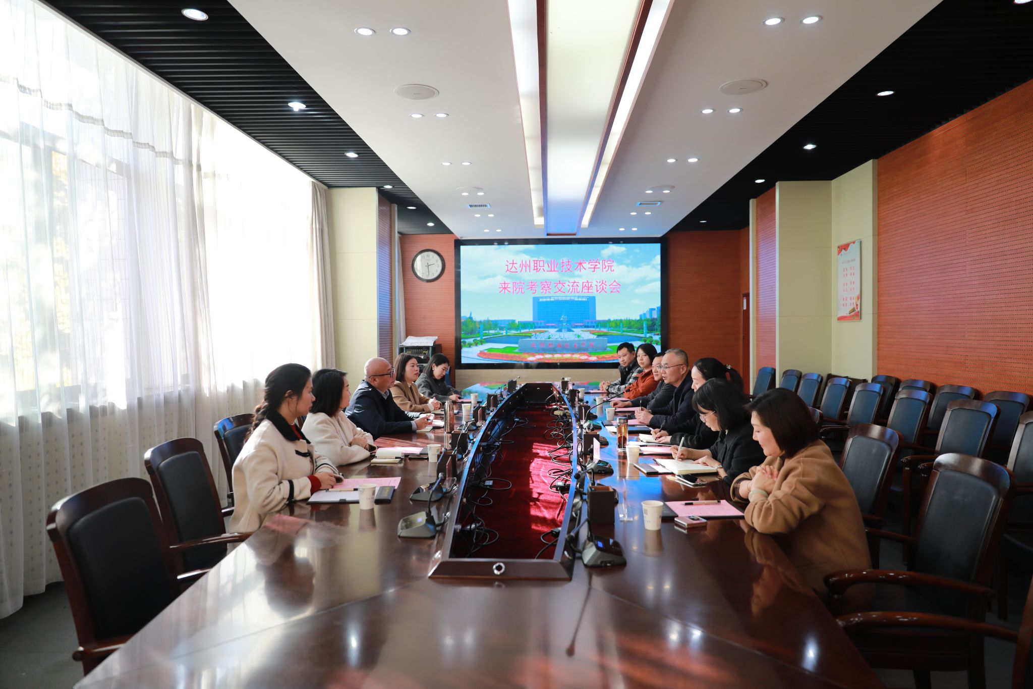 座谈会上,杨新宇代表学院对达州职业技术学院来访表示热烈欢迎,介绍了学院历史沿革,发展状况,内涵建设等方面基本情况,并围绕调研主题,分享了学院在专业建设、国省项目培育等方面的工作举措和经验做法。杨新宇表示,希望双方加大交流力度,相互借鉴学习,拓宽合作渠道,实现优势互补、资源共享,共同为职业教育高质量发展作出更大贡献。