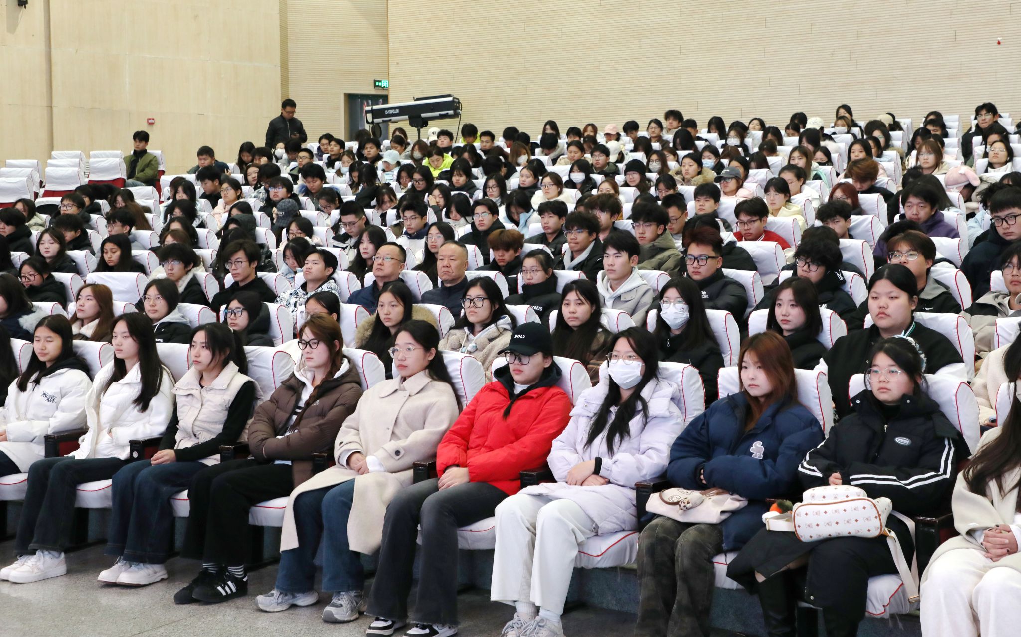 11月21日,米兰milan精神报告会在学生活动中心举行。学院党委副书记、工会主席孙彦彬,宣传统战部、学生处工作人员、二级学院部分辅导员,2025级新生代表400余人到场聆听报告。学院教师、陕西省作家协会、中国诗歌学会会员潘飞玉老师主讲。