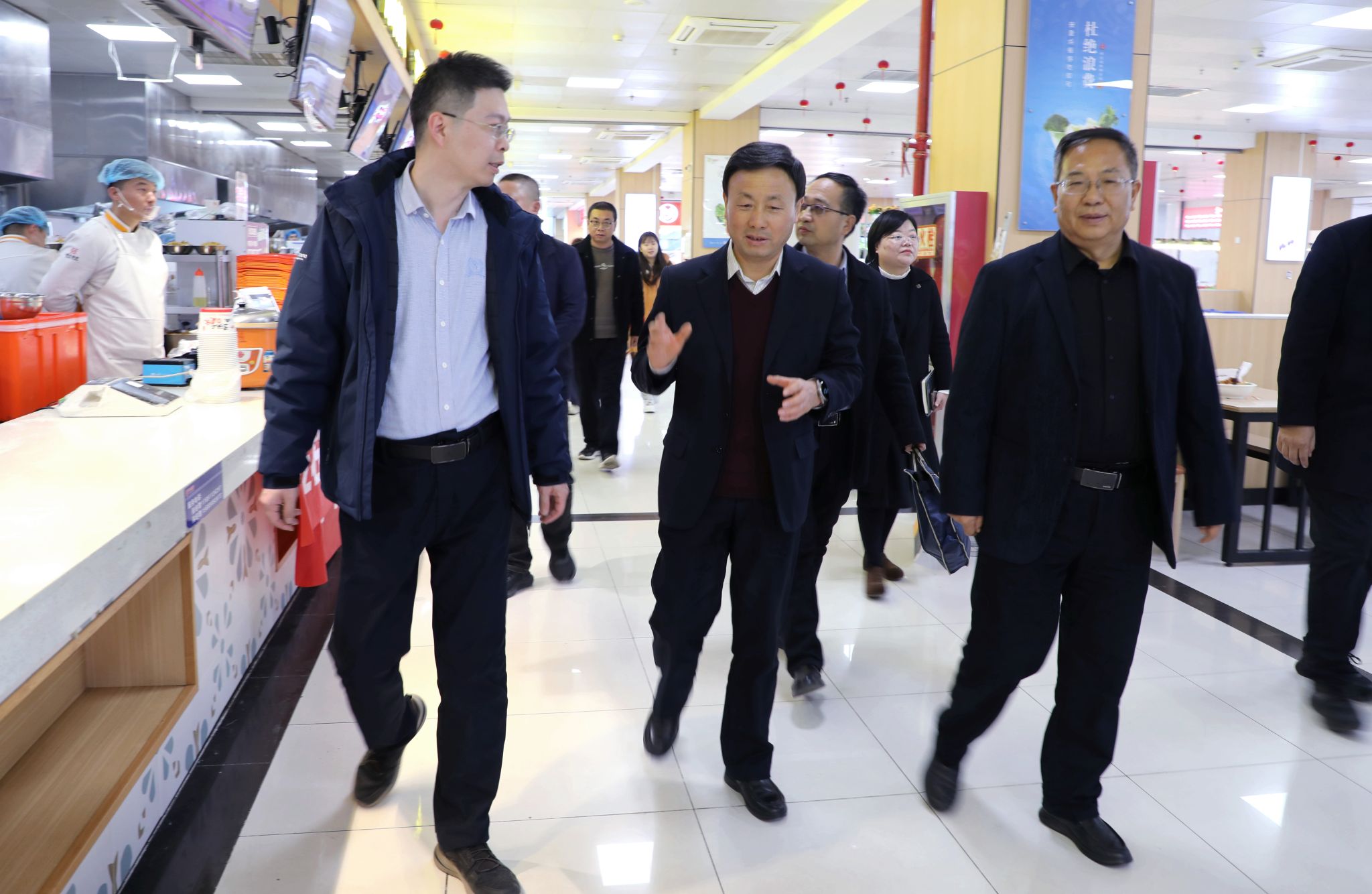 刘军民一行还参观考察了学院学生第一、第二食堂,“一站式”学生社区服务中心,学生党团活动中心。