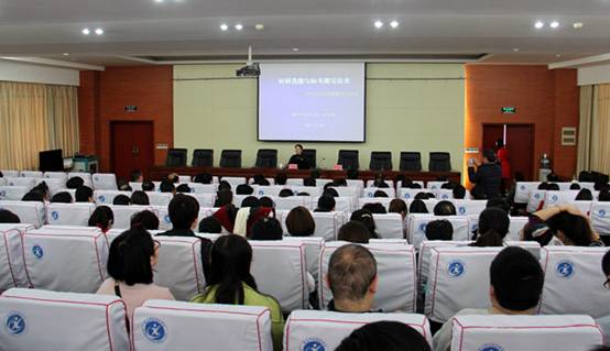 王亚丽的报告从如何进行科研选题、标书撰写技术两个方面进行了全面的阐述,开篇她先鼓励教师说:“科研并不神秘,要有一颗甘于寂寞的心。”在两个小时的报告中,王亚丽分享了她多年从事科研的经验、体会、感想。王亚丽从科研选题的意义、文献检索、建立工作假说,确定选题名称等具体的细节讲起,既有理论支撑又有实践操作技术验证。讲到标书撰写技术,她从摘要、立项依据、研究方案、研究基础等方面详细讲解了其撰写过程。报告最后,她还对与会教师在科研申报方面提出了几点好的建议。