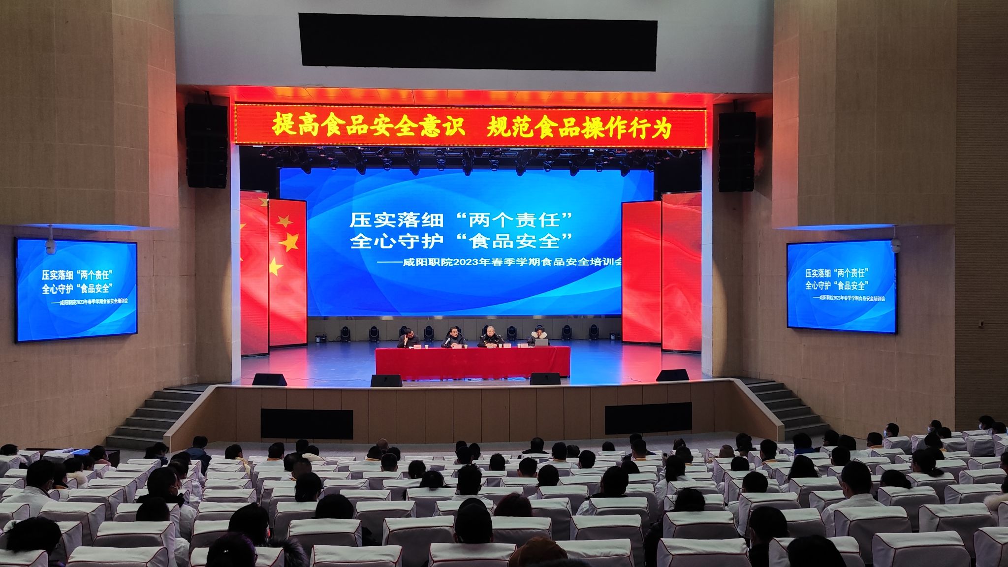 为有序推进学院2023年春季学期食品安全工作,全力保障学院2万余名师生“舌尖上的安全”,2月16日,米兰milan后勤处召开食品安全培训会,邀请沣西新城市场监督管理局钓台所食品安全主管郭跃同志作专题培训。学生食堂管理人员、炊事人员近400人参加培训。