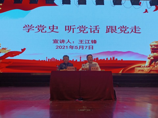 王江峰从“为什么学习中共党史、中共党史的基本脉络、把握四史逻辑关系、中共党史的基本经验”四个方面深入浅出、通俗易懂地为全体师生解读了中国共产党从无到有、从弱到强,力挽狂澜、不屈不挠的百年光辉历程。中国共产党成立100周年带给中国人民最为深切的感受就是:没有共产党,就没有新中国。办好中国的事情,关键在党。