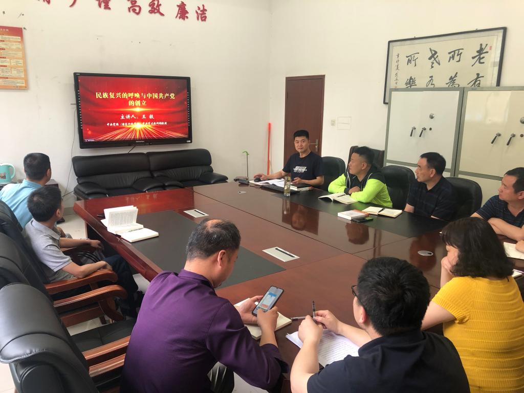 5月26日下午,国资处党支部组织全体干部在133室观看学习由中央党校(国家行政学院)中共党史教研部教授王毅主讲的《民族复兴的呼唤与中国共产党的创立》。