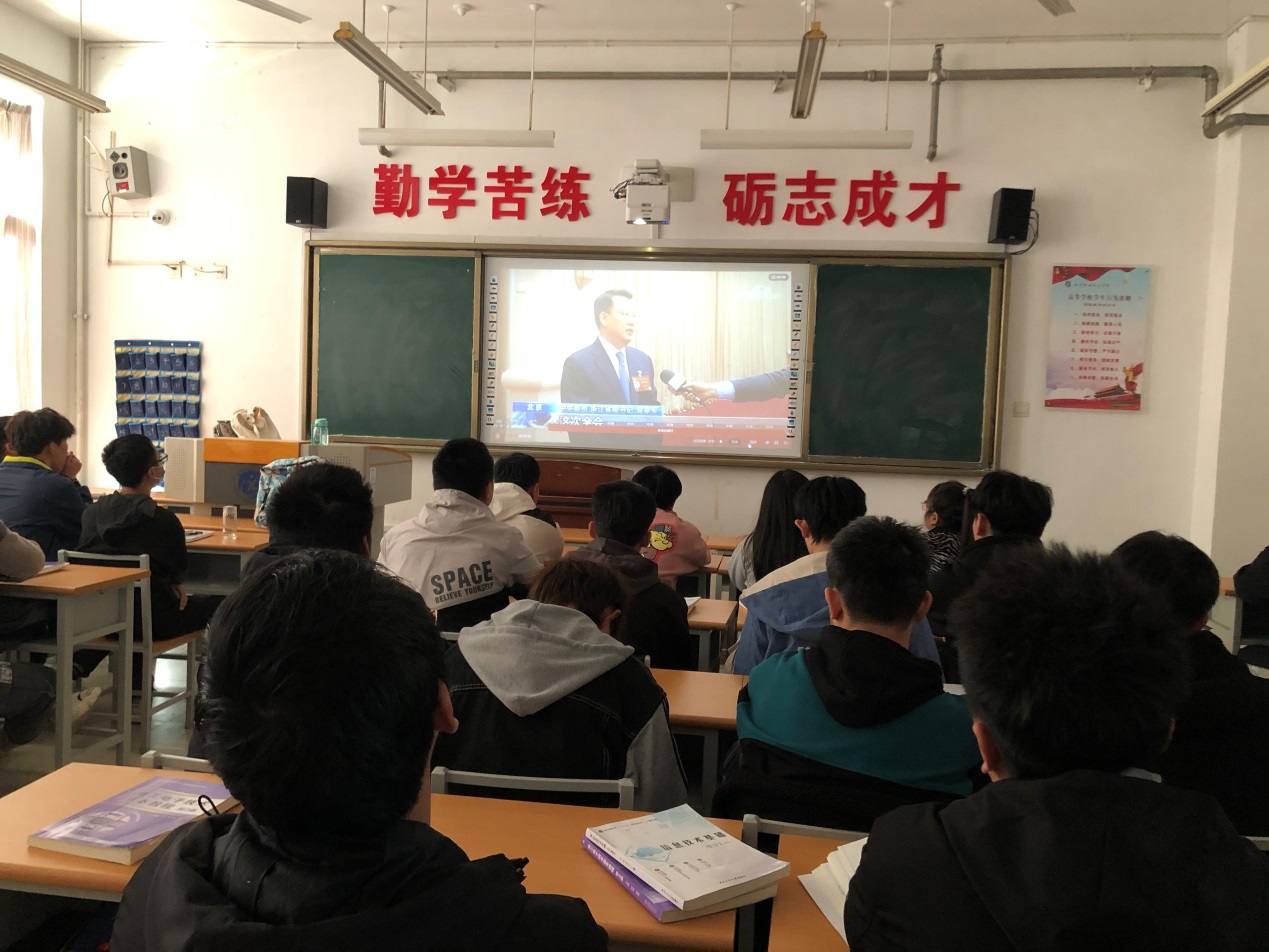 11月12日上午,中共中央在京举行新闻发布会,介绍党的十九届六中全会精神,根据省委教育工委要求和学院党史学习教育安排,电子信息学院在教学楼712组织副科级以上管理干部、无课党员及无课学生共同观看大会直播。