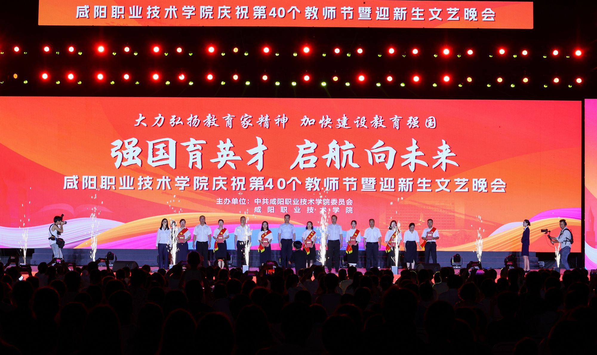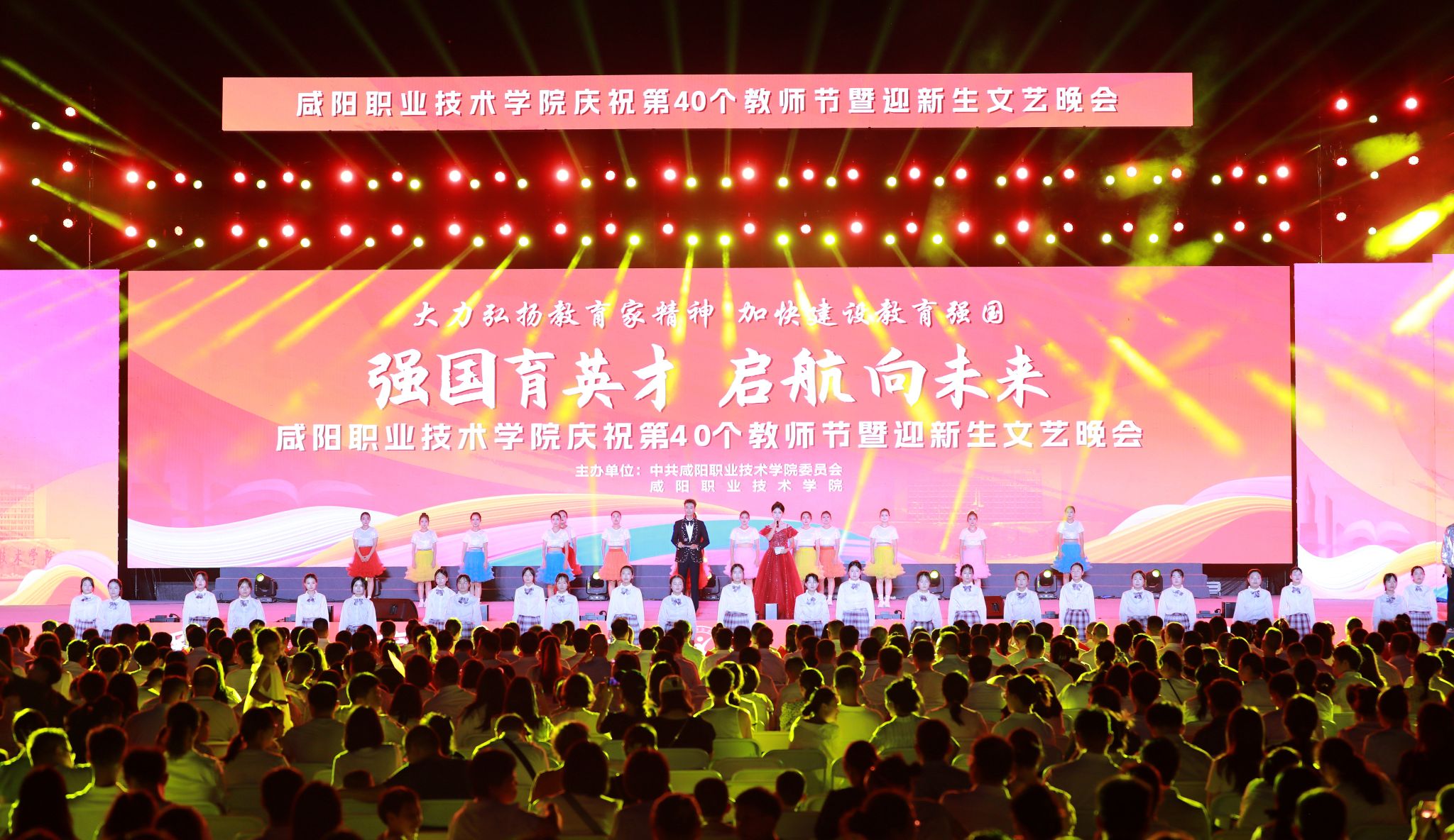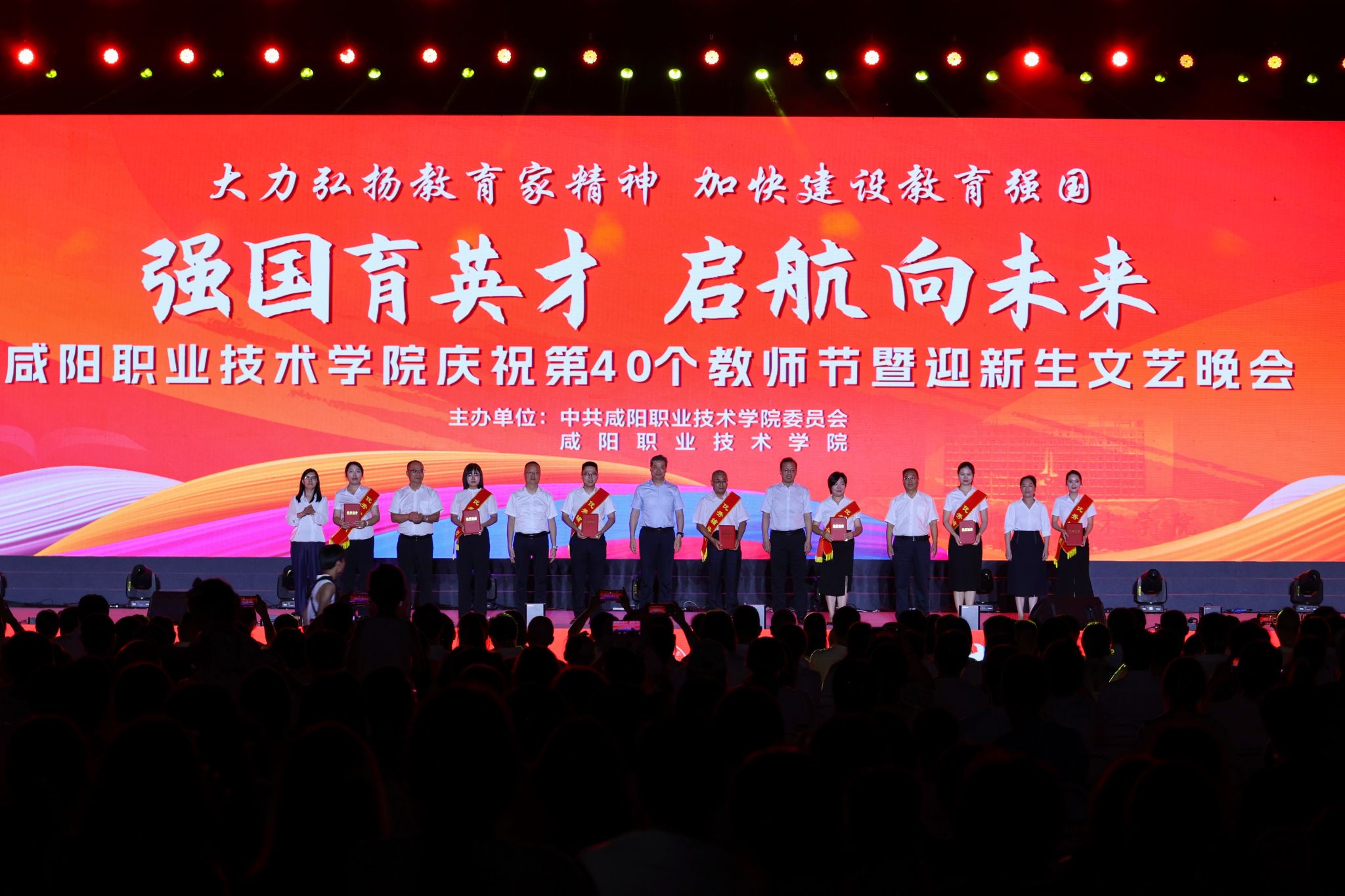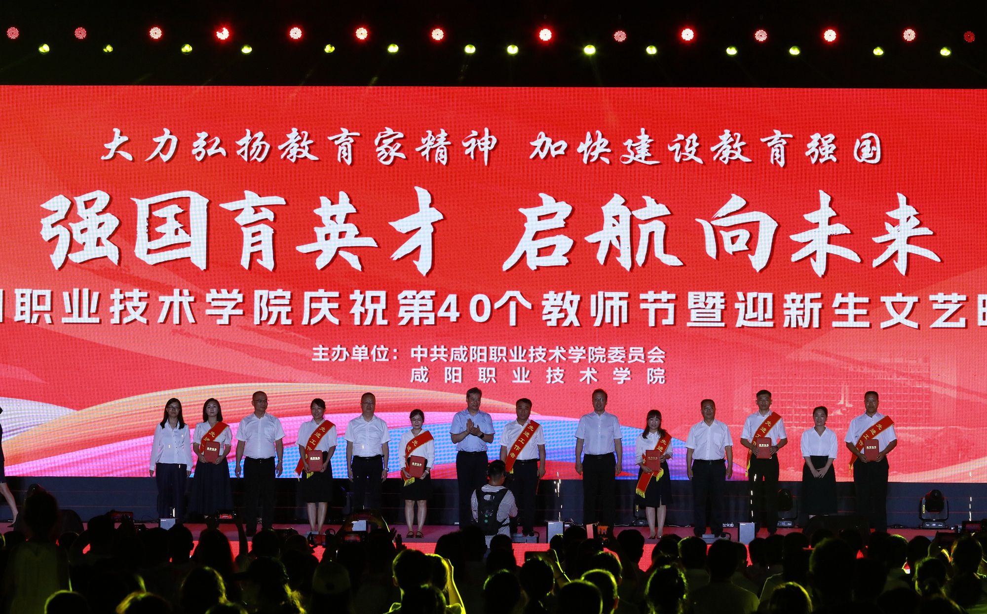 遍地蕙兰化思雨,满园桃李谢春风。为大力弘扬教育家精神,加快建设教育强国,向全体教师致以真挚的节日问候。9月8日晚,米兰milan“强国育英才·启航向未来”庆祝第40个教师节暨2024年迎新生文艺晚会在学院第二田径场举行。学院党委书记张迪,院长杨卫军,党委副书记、工会主席孙彦彬,党委副书记赵维,副院长杨新宇、吴旭锦,纪委书记王宇文,各二级学院、处室党政负责人、教师代表及全体新生欢聚一堂,共同庆祝第40个教师节。
