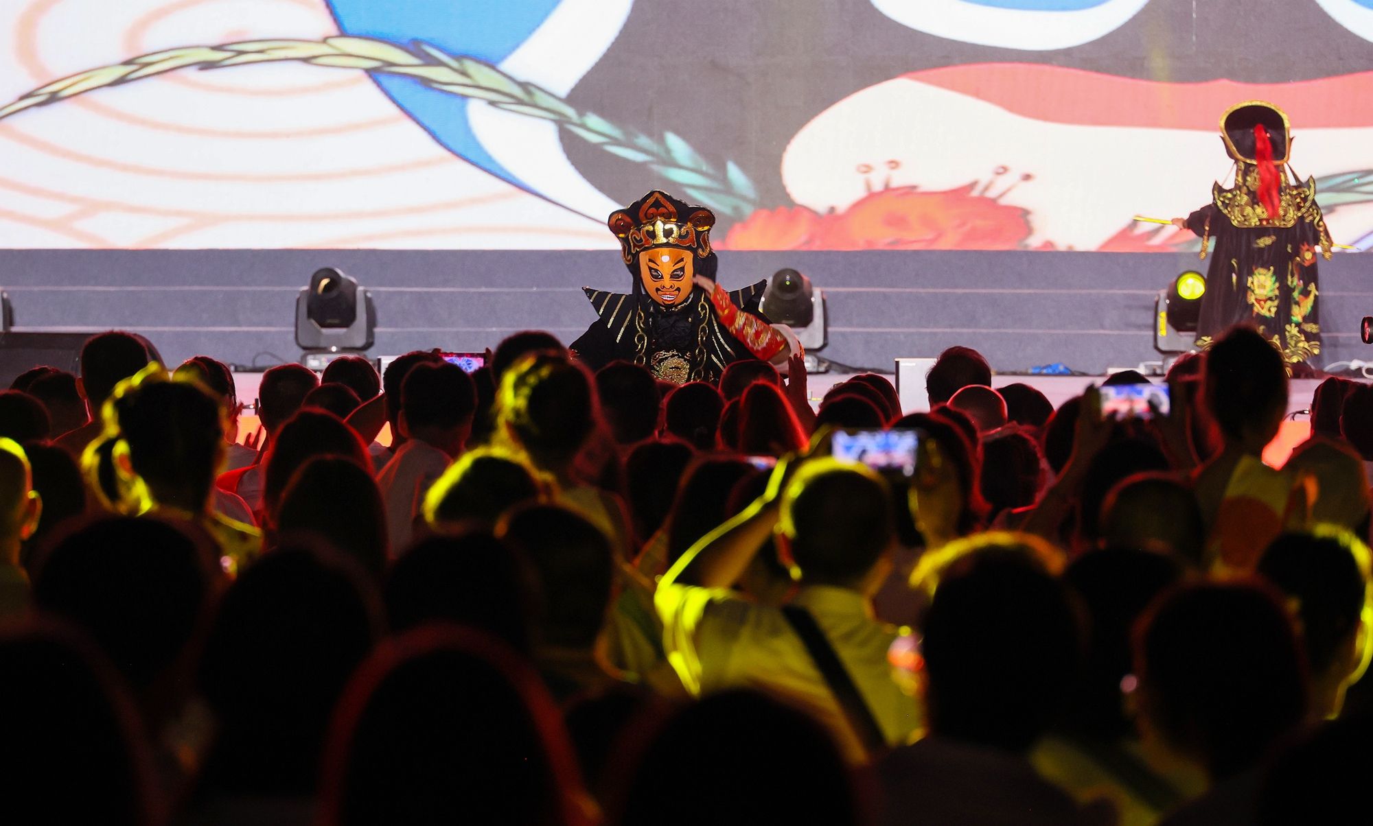 学院300余名师生用精彩的节目,细致的演绎,为广大教师及在场观众带来一场秋日的文艺献礼。演出在歌舞《一起来,更精彩》中拉开序幕,以欢快的节奏和动感的舞步,展现了教育事业的勃勃生机与无限可能。节目《出口成章》《变脸》以幽默诙谐的语言和生动的表演,赢得了观众们的阵阵笑声。《花开新时代》《征途》《剪花娘子》《孔子》等舞蹈,以舞寄情,用翩跹舞姿呈现春风化雨、尊师重教的社会风尚。《瑶族舞曲》《龙卷风》《让青春点亮未来》等歌曲,以歌颂情,汲取奋进力量,奏响全国文明校园的和畅之声。演出在合唱《老师我想你》的深情歌声中圆满落幕,用热烈的掌声和欢呼声向辛勤耕耘在教育一线的老师们致以最崇高的敬意。
